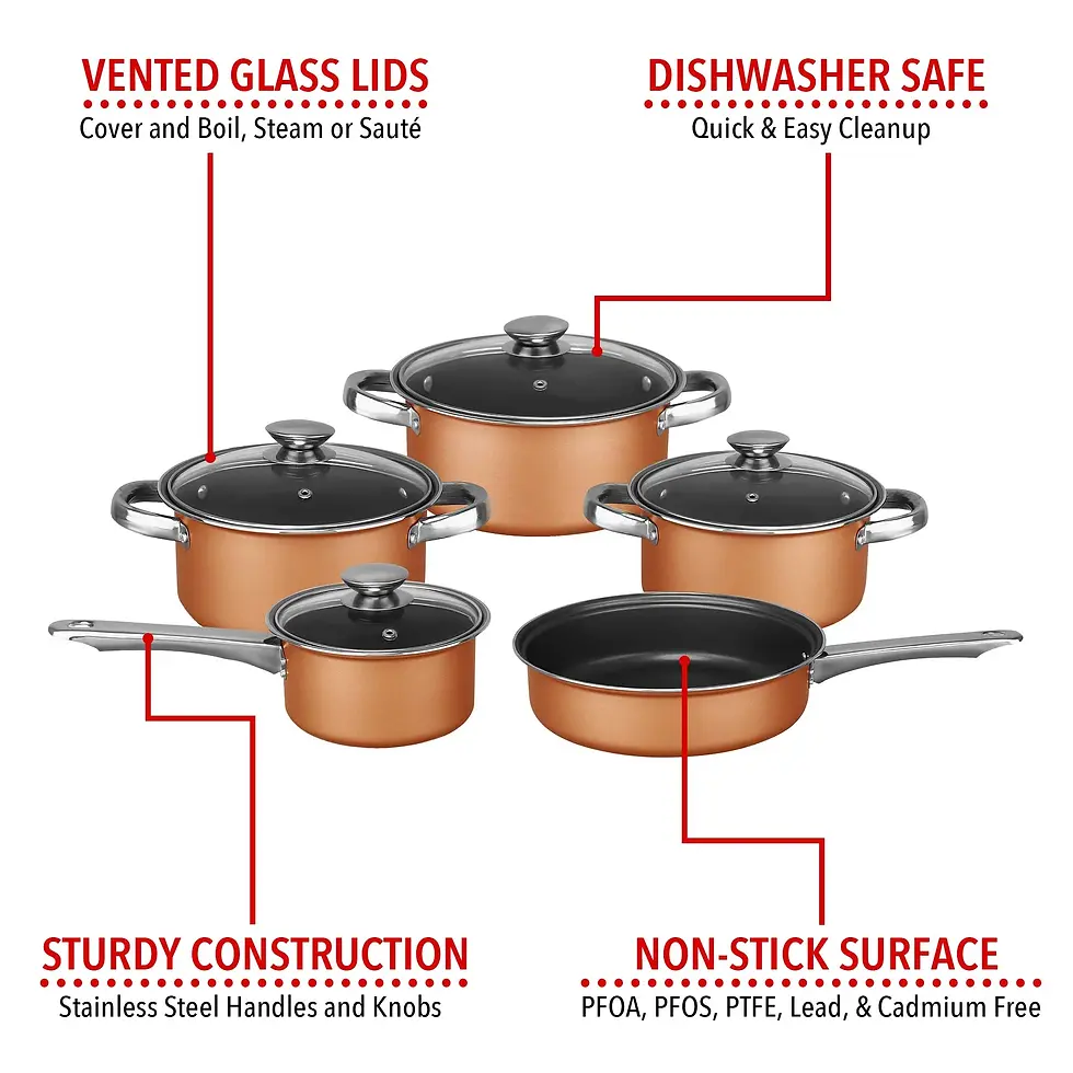 Brentwood BPS-309C 9-pcs Non-Stick Cookware, Copper
